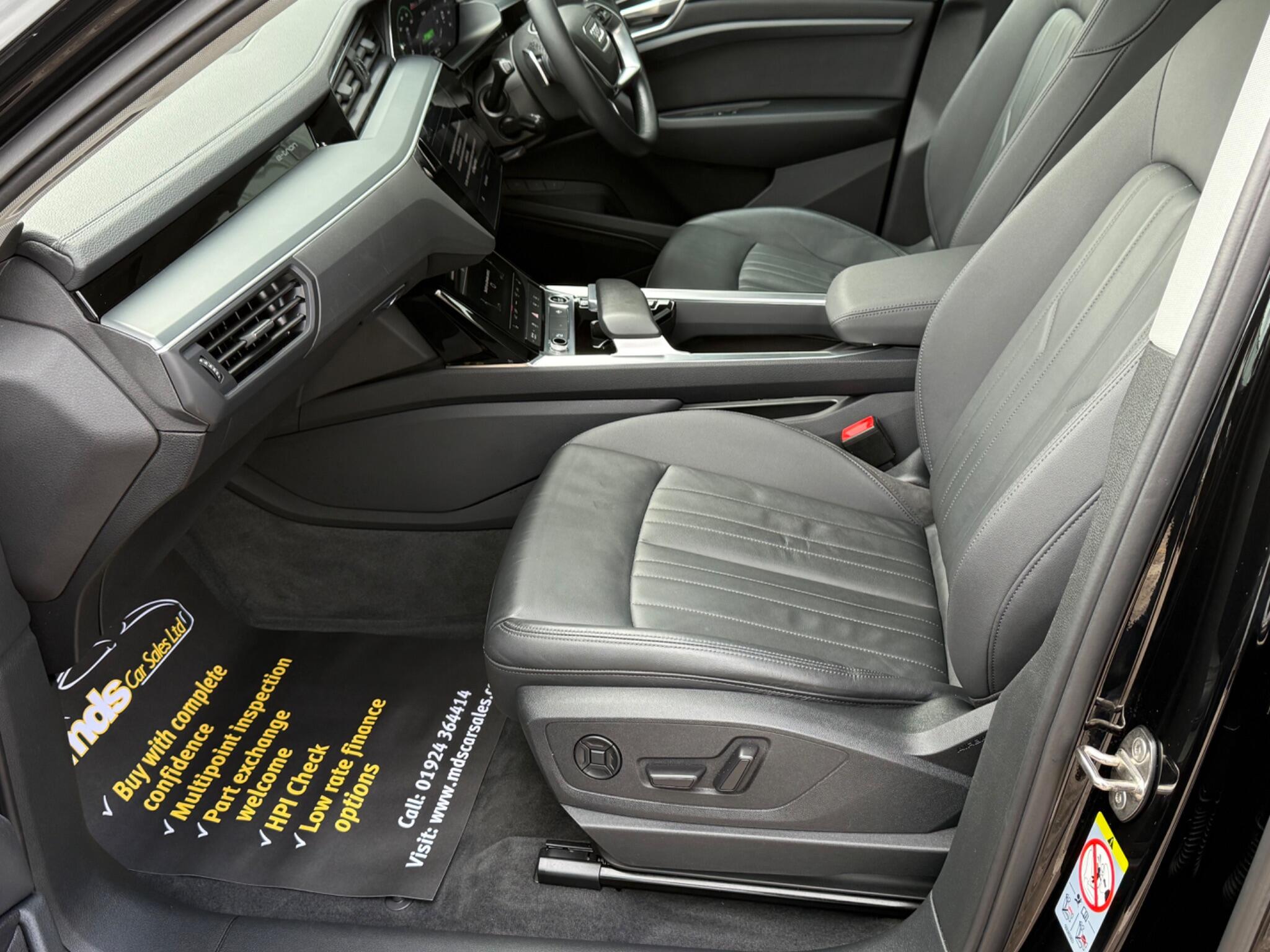 This 2021 Audi e-tron Technik boasts exceptionally low mileage for its age, having covered just 13,607 miles with only one owner. This electric, four wheel drive SUV offers a battery total capacity of 71 kWh, providing a maximum range of 194 miles when new. Charging at home on a 7kW charger takes approximately 9 hours and 10 minutes for a full charge, while rapid public charging can replenish the battery from empty to 80% in as little as 34 minutes. The vehicle history check is clear, assuring you of its sound condition. This fabulous company owned Audi E-Tron will be supplied with a full Audi dealer digital service record having had services carried out at 8k and just at 13k, 4 unmarked 20 inch alloy wheels running on Continental tyres both remote keys and owners handbook are present along with all documentation including MOT until September 2026. The Technik trim level comes equipped with a host of desirable features, including a panoramic glass sunroof that floods the cabin with light. For enhanced comfort, the electrically adjustable front seats include a memory function for the driver's seat, and the front seats are heated. Parking is made effortless with the Parking System Plus, featuring 360 degree sensors and function on demand preparation. Stay connected on the go with the integrated Bluetooth interface. Furthermore, the Audi e-tron offers a generous boot space, making it a practical choice for everyday use and longer journeys.